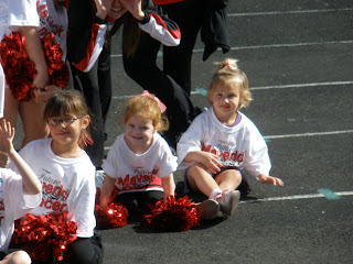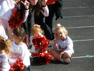 It was Tori's birthday this week, and she is 4, she can't even beleive it! Since she has a love for the cheerleaders, I thought the perfect gift would be a cheerleading outfit. When she opened it, she wasn't sure what it was. However she wore it around the whole next day, so I think it was a hit! I just can't wait for her party next week, lots of crazyness here, there will be...